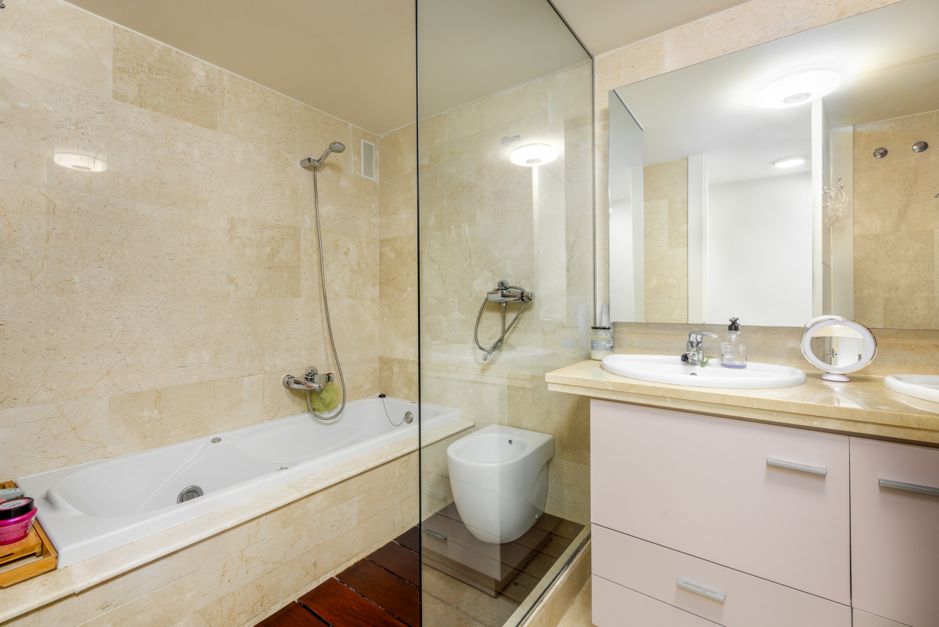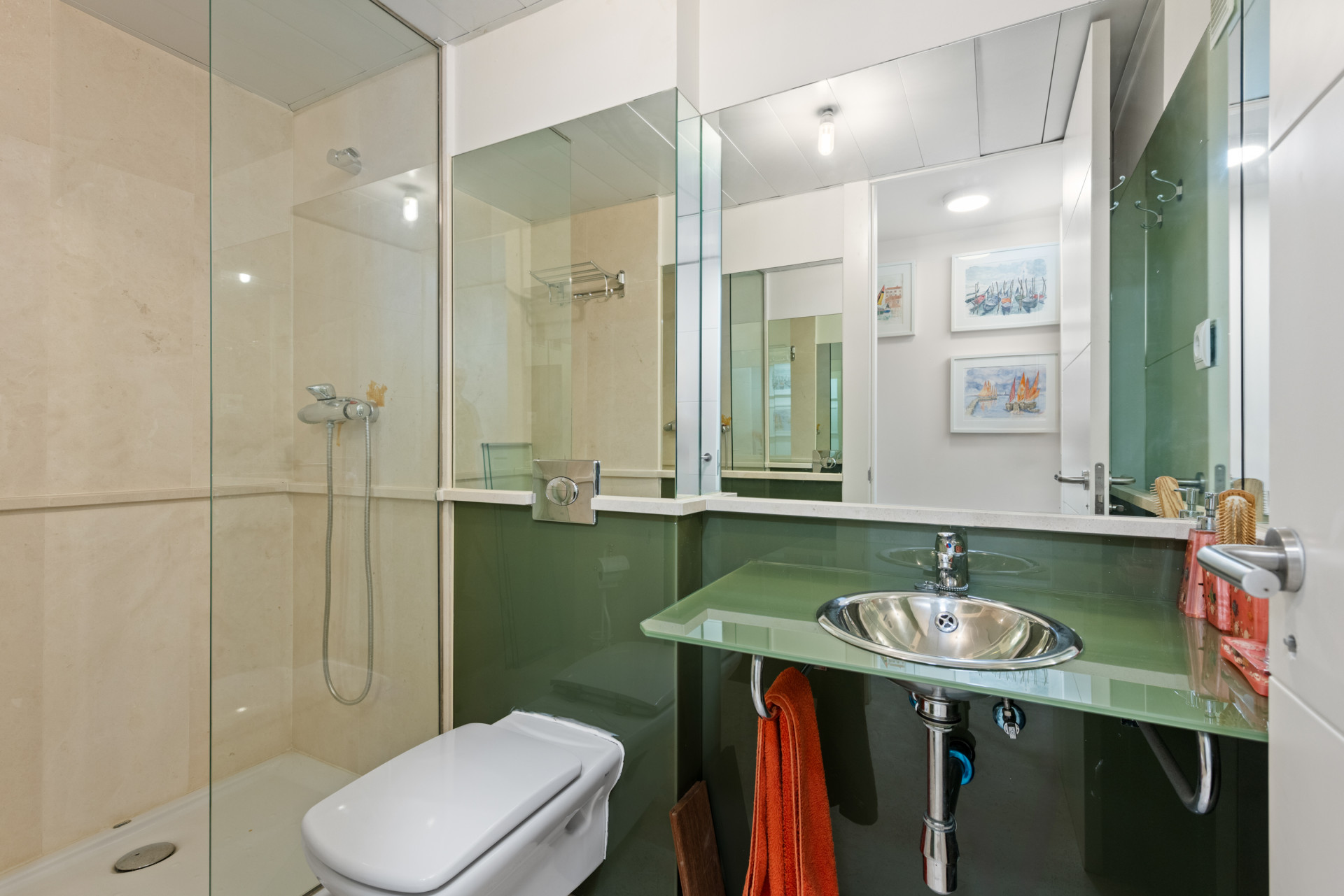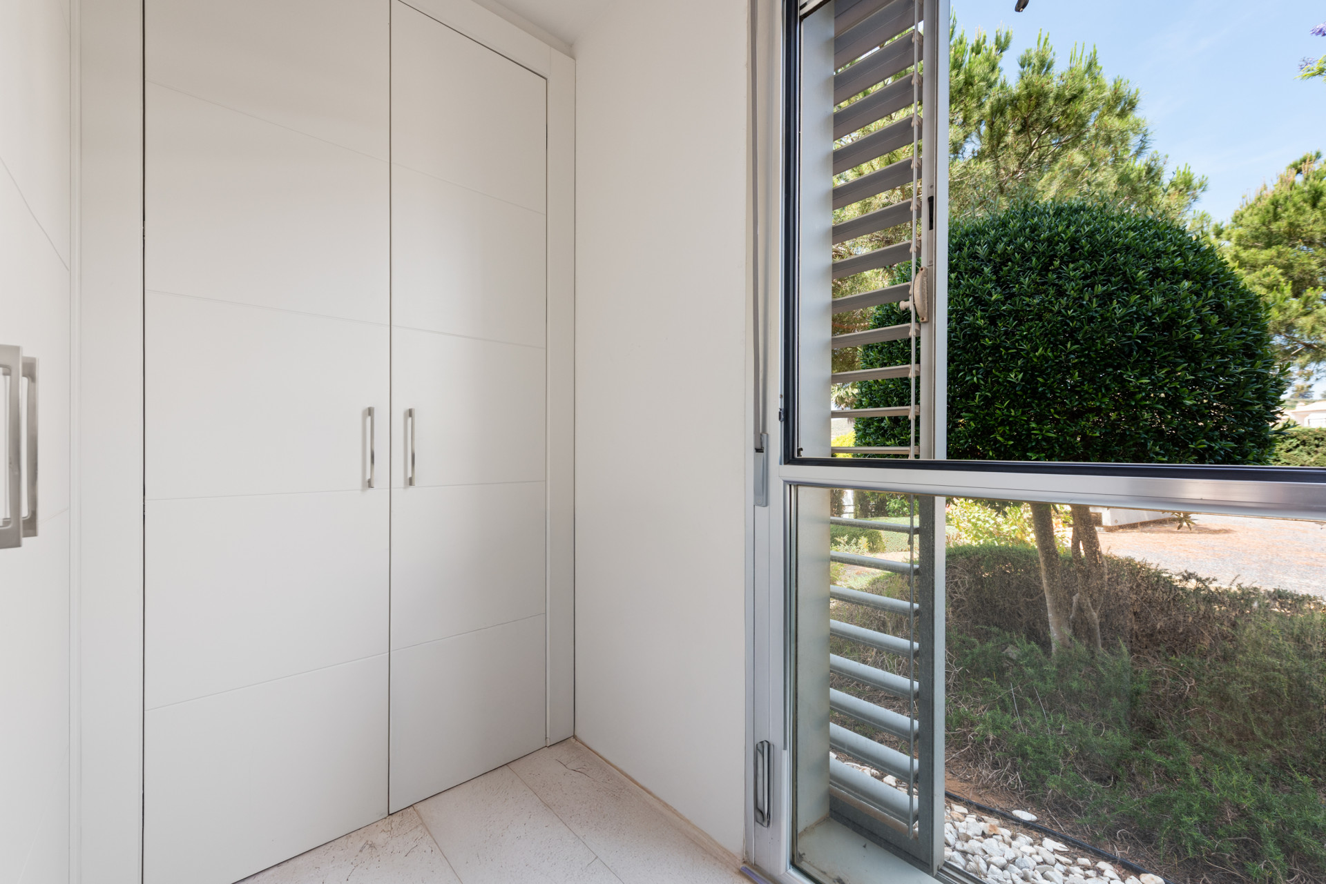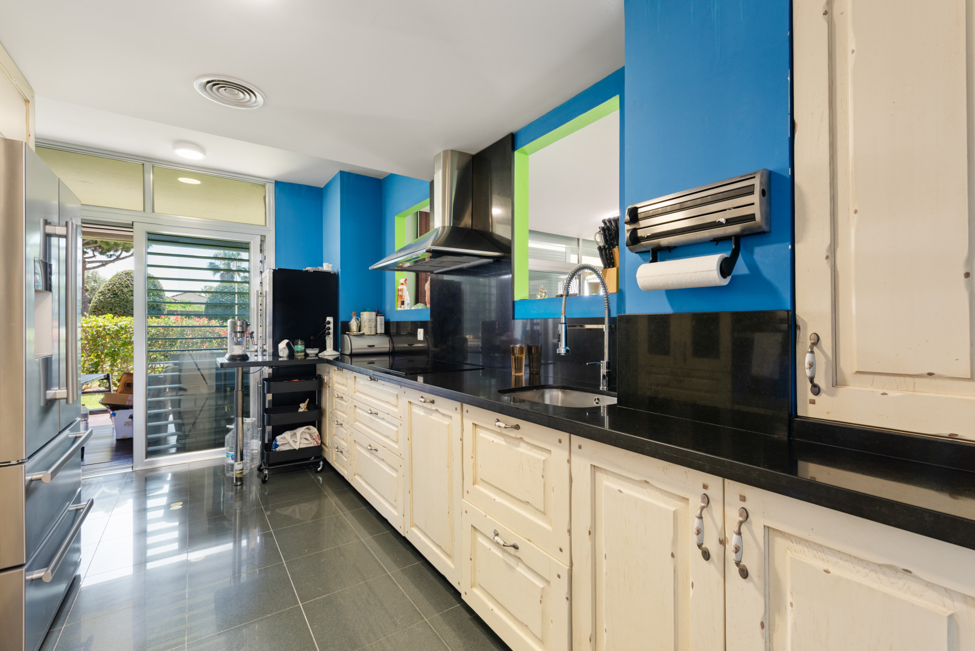 The bright, spacious living-dining room opens directly onto the terrace and offers a perfect layout for family gatherings or entertaining guests. The apartment excels in both technical amenities and comfort, featuring underfloor heating throughout, a Simon VOX home automation system, centralized air conditioning and heating with individual controls, and motorized security shutters. The ventilated ceramic-insulated façade ensures superior energy efficiency, maintaining ideal temperatures year-round. Additionally, the property embraces sustainability with solar panels and a gas boiler, promoting efficient and eco-conscious living.