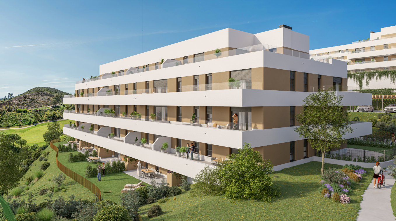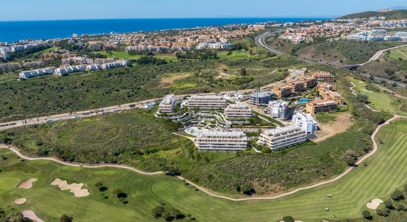 Apartment for sale in Calanova Golf, Mijas Costa with 3 bedrooms, 2 bathrooms, 1 on suite bathroom and with orientation south, with communal swimming pool, communal garage and communal garden. Regarding property dimensions, it has 98,26 m² built, 85,11 m² interior and 128,08 m² terrace. Has the following facilities amenities near, transport near, air conditioning, central heating, fully fitted kitchen, utility room, gym, double glazing, video entrance, brand new, dining room, living room, internet - wi-fi, covered terrace, fitted wardrobes, gated community, lift, garden view, close to sea / beach, close to golf, uncovered terrace, handicap accessible, saltwater swimming pool, close to shops, close to town, close to schools, pets allowed, gres floors, armored door, aerothermics and internet - fibre optic.