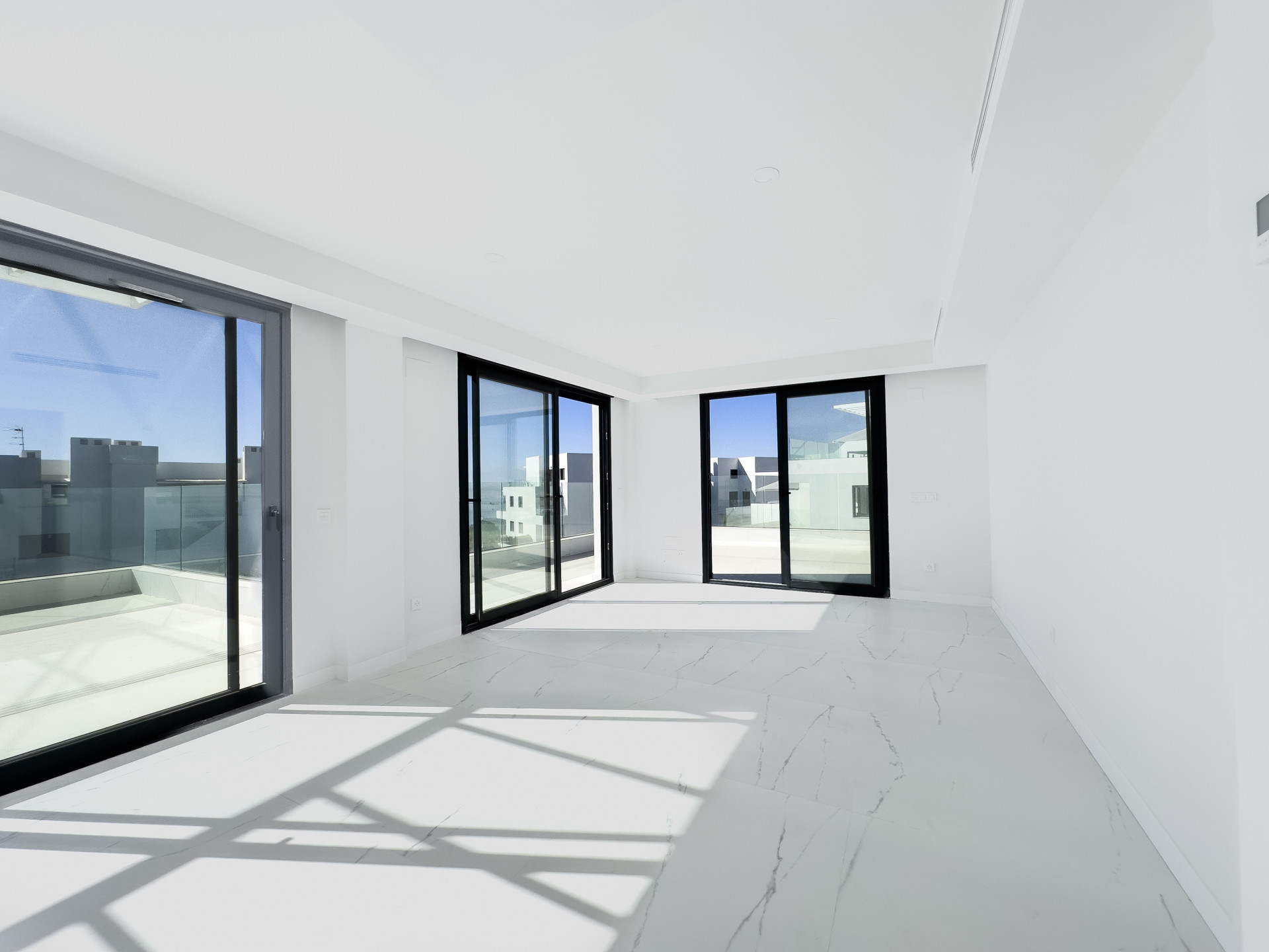 This luxury penthouse is part of a gated community with gardens and a communal pool. It also has a gym, ideal for those who want to stay fit. Other features include double glazed windows, video intercom, fitted wardrobes, and porcelain floors.