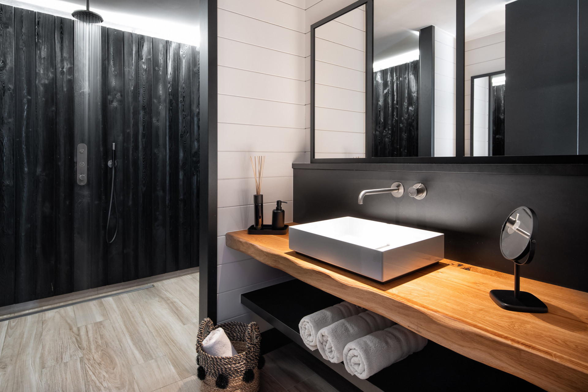 Inside, the villa impresses with its luminous volumes, refined finishes, and contemporary comfort. It offers 4 bedrooms (three of them with double beds) and 3 modern bathrooms with walk-in showers. The house is perfectly suited for families and guests, including young children, thanks to dedicated equipment such as a baby bed, high chairs, safety gates, changing table…