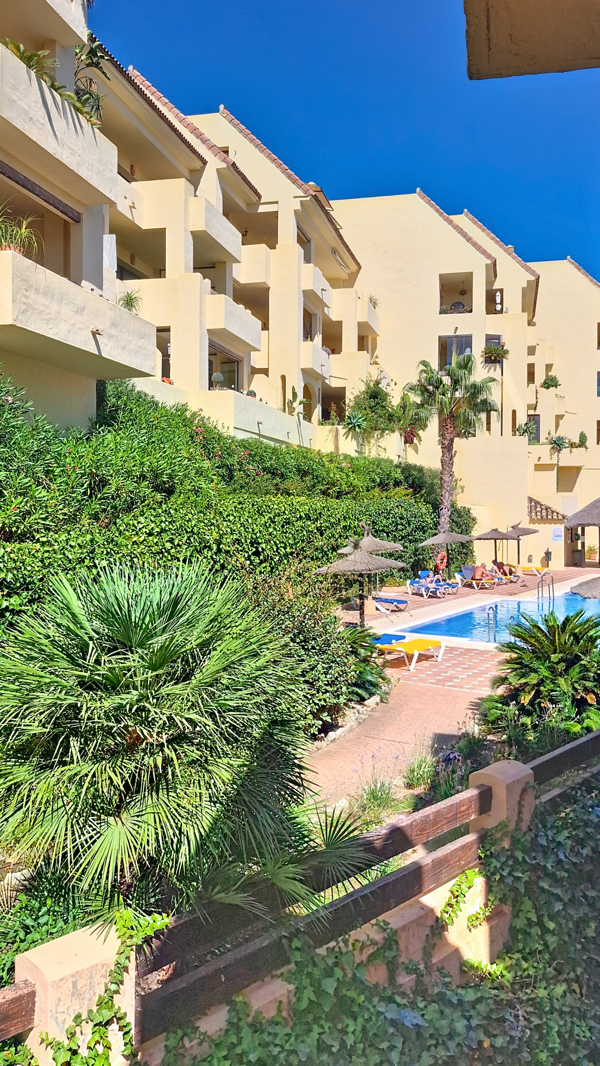 Situado en una urbanización prestigiosa cerca del puerto de La Duquesa, este apartamento ofrece hermosas vistas al mar y al golf.