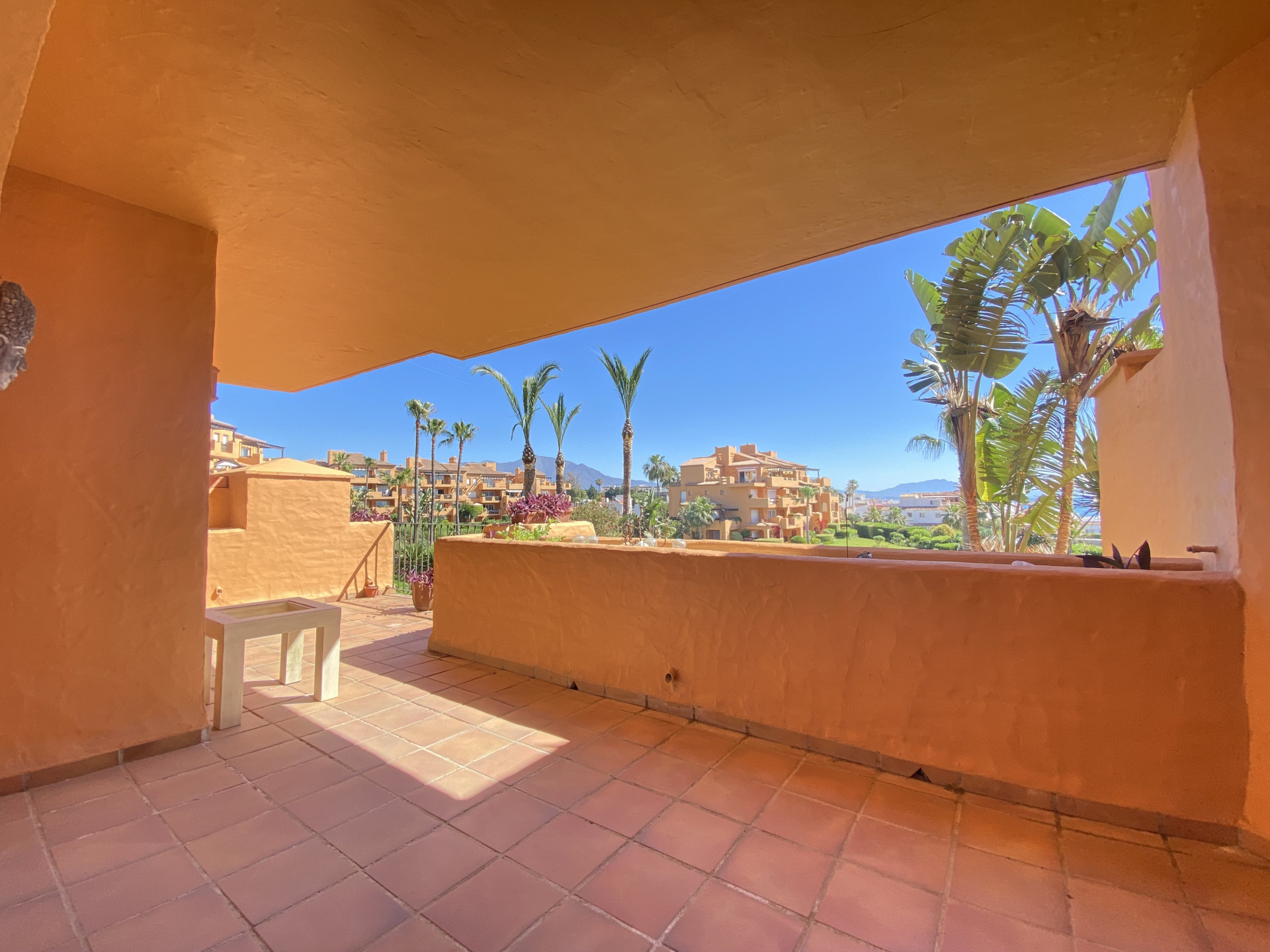 El apartamento cuenta con tres amplios dormitorios, el espacio está diseñado para maximizar el confort y la funcionalidad. La terraza principal esta conectada a la habitación en suite, lo que permite disfrutar de las vistas al mar y a los jardines tropicales, También ofrece otra terraza con orientación sur oeste en una de las habitaciones, lo cual hace de ella un apartamento cálido en la temporada de invierno.