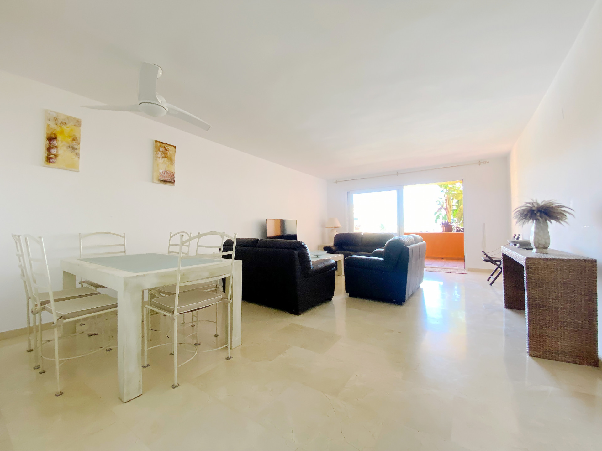 Entre las características destacadas de la propiedad se encuentran el acceso directo a la playa, una entrada de seguridad con videoportero, y un sistema de cámaras de vigilancia. Además, el apartamento dispone de aire acondicionado centralizado en cada habitación, garantizando un ambiente agradable durante todo el año. La comunidad ofrece una piscina y jardines tropicales, perfectos para relajarse y disfrutar del clima mediterráneo.