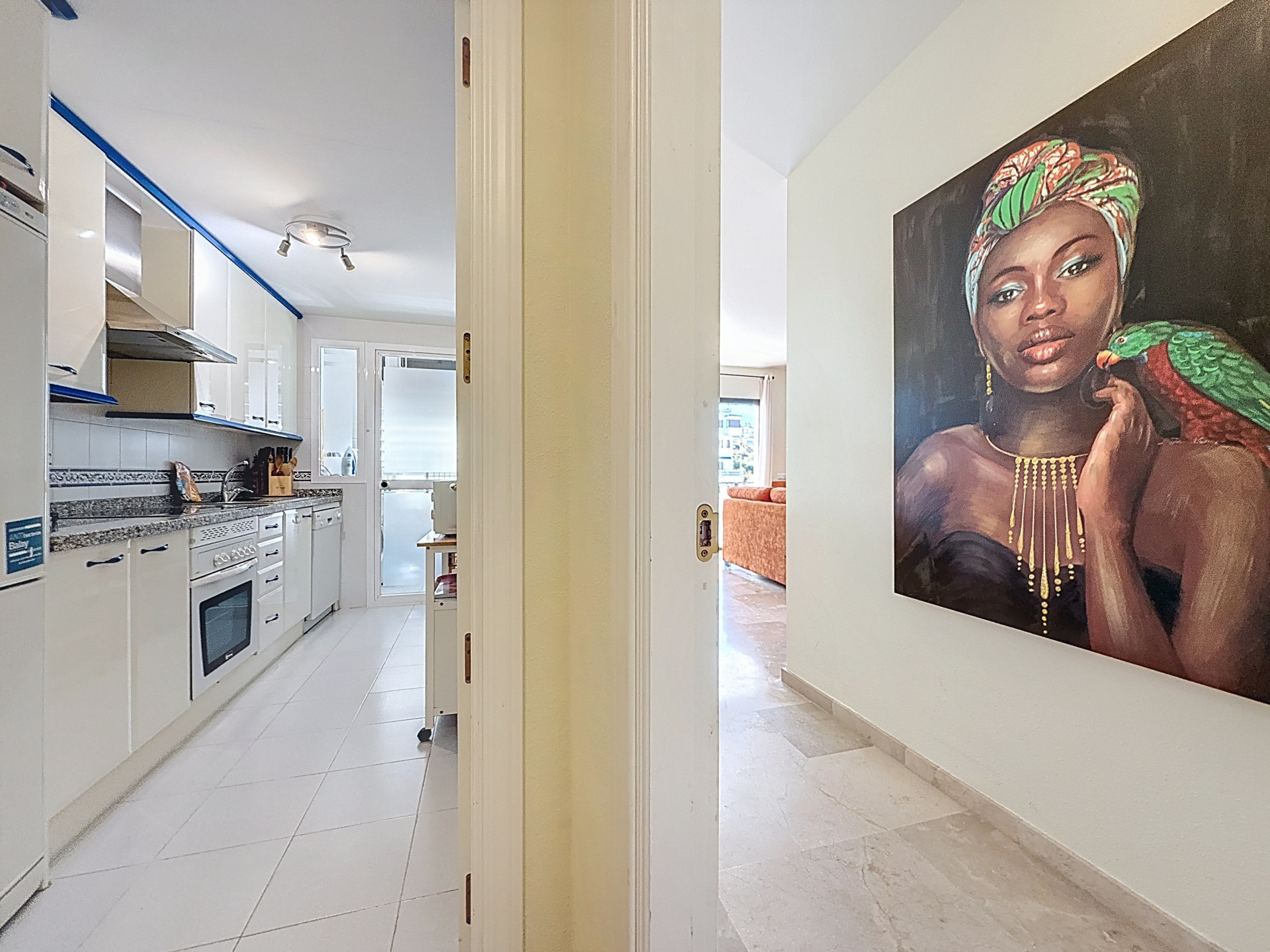 La terraza de 16 m² es perfecta para comidas al aire libre y momentos de relax. El verdadero valor añadido es su excepcional ubicación dentro del puerto, con acceso directo a la playa, residencia cerrada con seguridad 24 horas y plaza de garaje subterránea, un extra muy poco común en esta zona.
