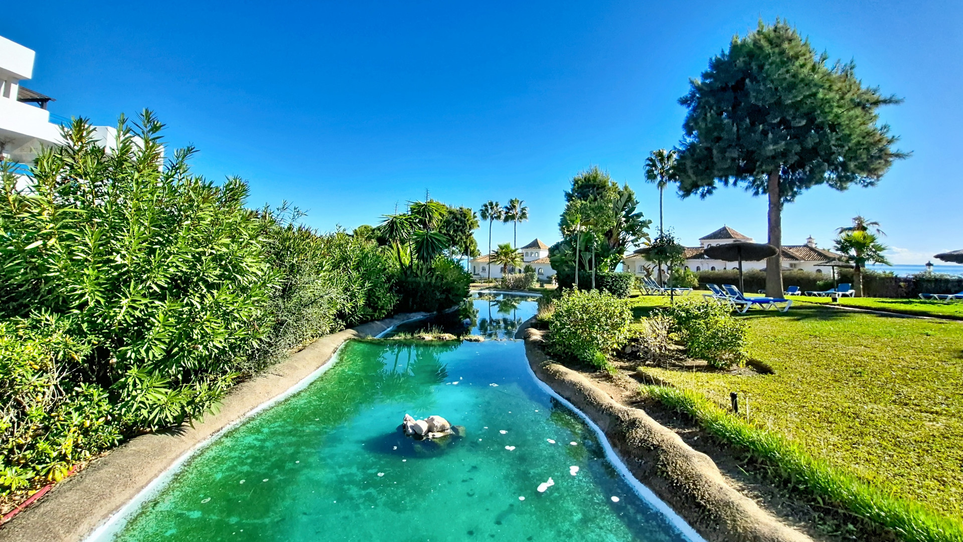 El complejo residencial dispone de cuatro piscinas y dos pistas de pádel. Además, cuenta con seguridad 24 horas y está completamente cerrado. El acceso se realiza a través de una entrada vigilada con guardias de seguridad y barrera. La propiedad incluye también dos plazas de garaje.